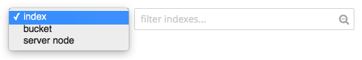 Note that towards the right, an additional control provides a pull-down menu whereby indexes can be viewed either for all Index-Service nodes on the cluster, or by node. Additionally, an interactive field is provided, to allow the displayed content to be filtered; by entering either all or part of an index-name.