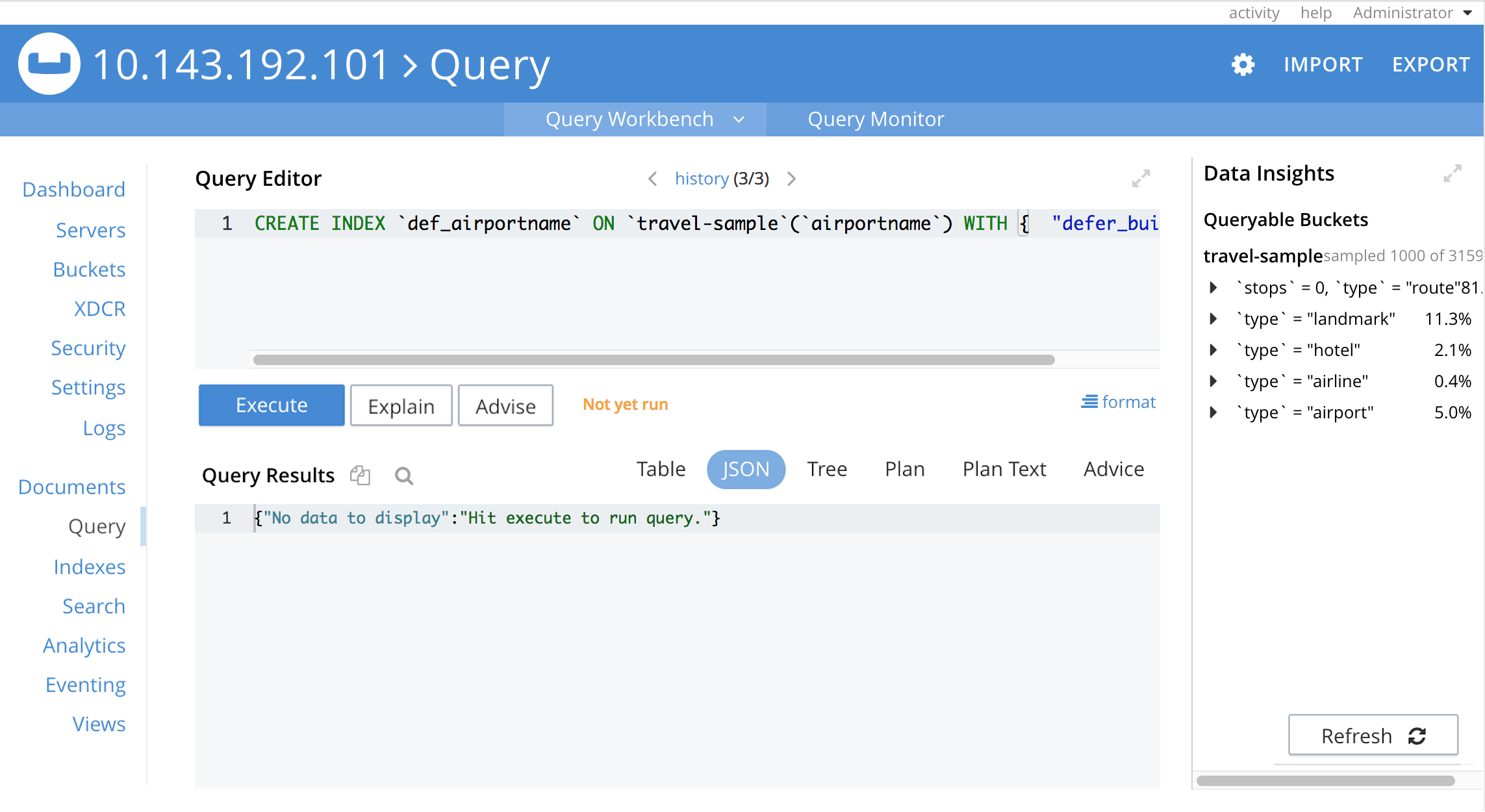 This page describes how to use Couchbase Web Console to manage indexes. It also shows how to use the console’s Query Editor, provided on the Query screen, to define and edit indexes by means of N1QL.